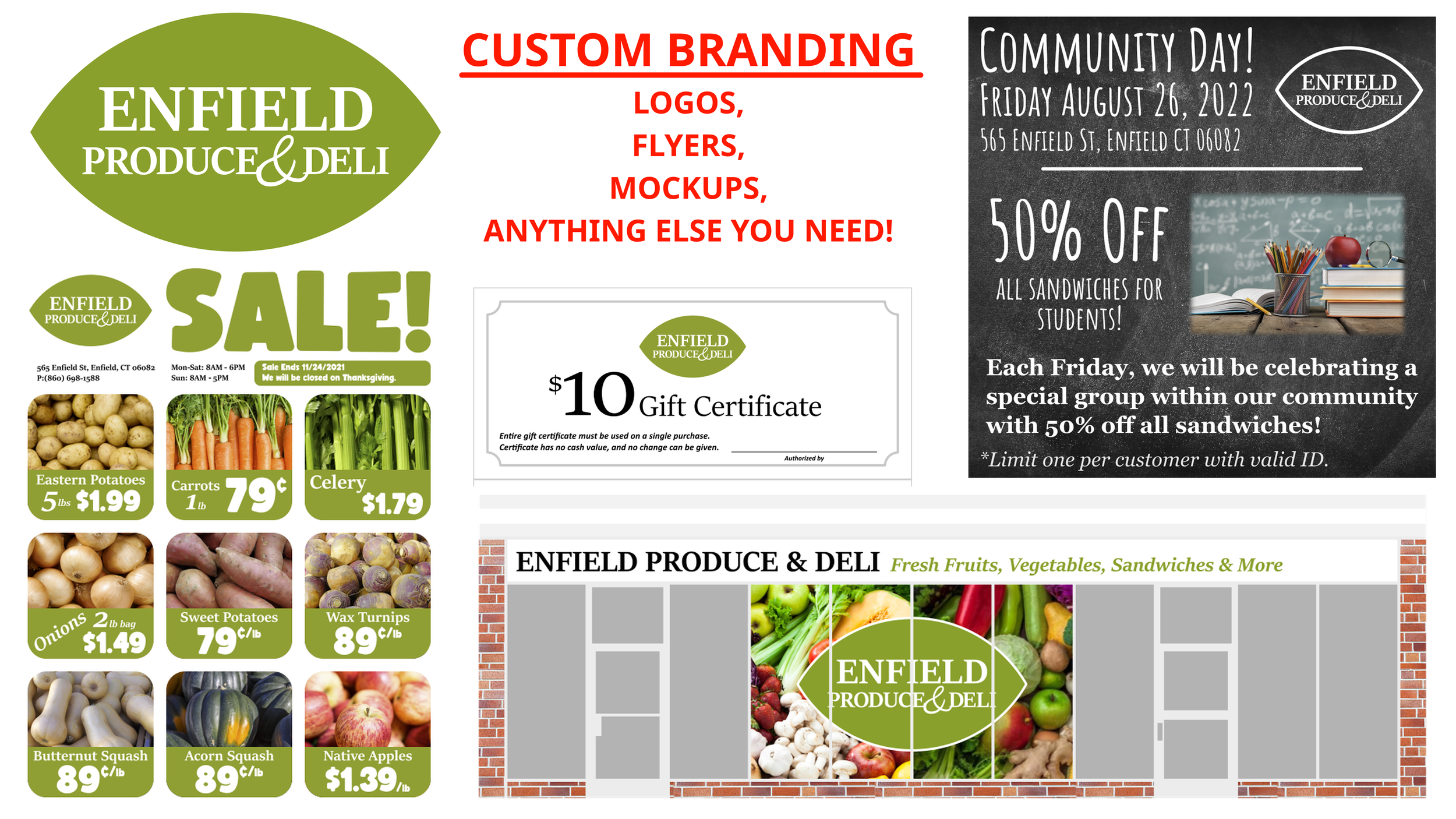 From logos to business cards, flyers to menus, or polishing up old artwork, we’ll work with you to help create your unique vision.